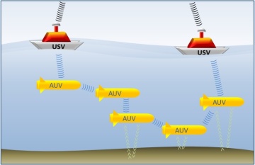 This interdisciplinary project aims to develop autonomous underwater and surface vehicles. One subproject focusses on the development of calibration procedures and algorithms for the special challenges of underwater photogrammetry. Another subproject realizes a distributed data management system for autonomous maritime systems, enabling the administration of three dimensional data.