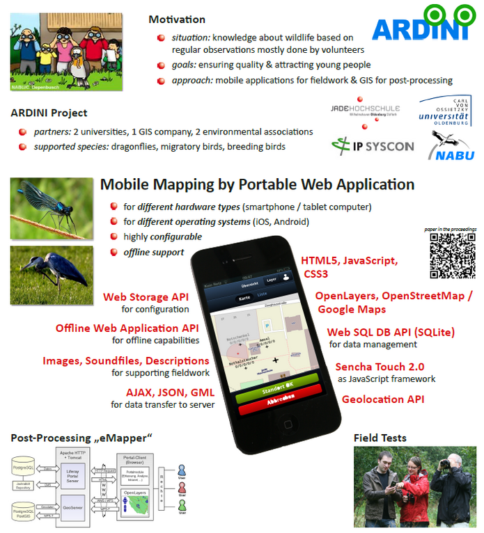 Dazu wurde in ARDINI wird ein Erfassungssystem entwickelt, das die drahtlose Übertragung von Meldedaten direkt aus dem Gelände unter Nutzung der Mobilfunktechnologie ermöglicht. Es bietet dazu Kartenmaterial und Artbestimmungsfunktionen im Gelände an. Dabei werden weitere Funktionen integriert, die helfen, die Richtigkeit der Beobachtungen zu verbessern. Das System ARDINI wurde anhand ausgewählter Artengruppen (Libellen und Vögel) zur Anwendungsreife entwickelt und durch Felderprobung und begleitende Fachgespräche evaluiert.